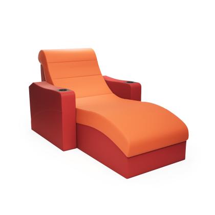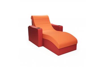 The sleek shape and smooth textures of this lounger lend itself to front row spaces or luxurious screens.